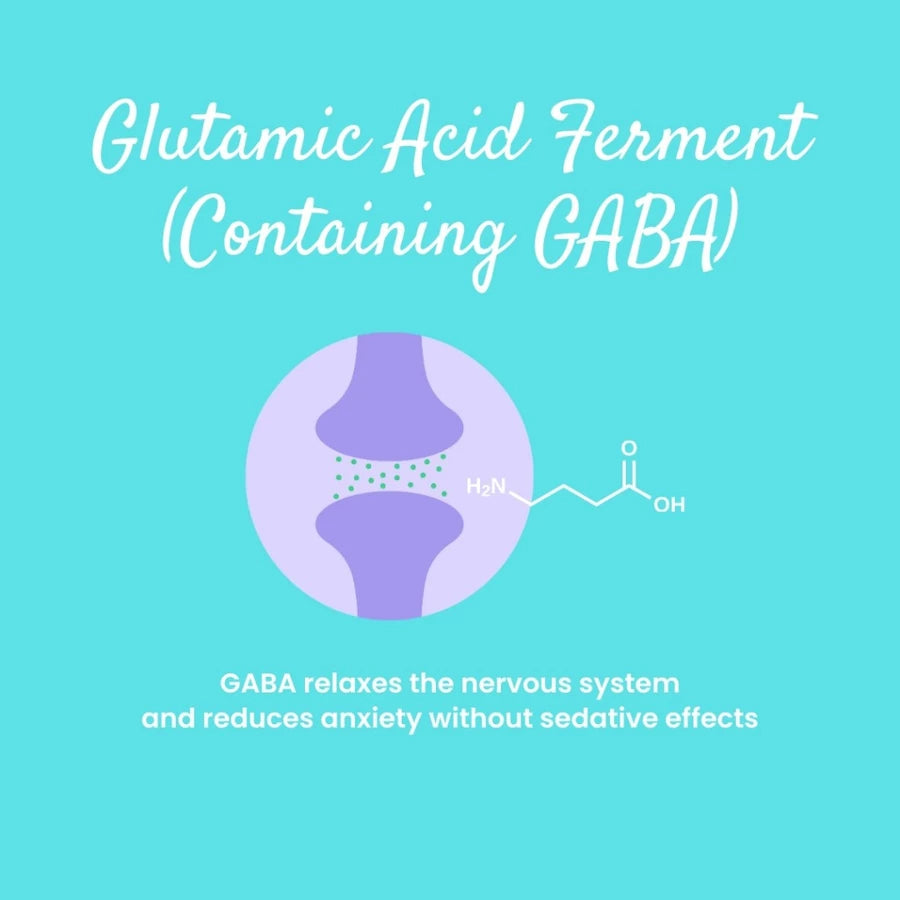 - Glutamic Acid Ferment (Containing GABA) - GABA relaxes the nervous system and reduces anxiety without sedative effects.