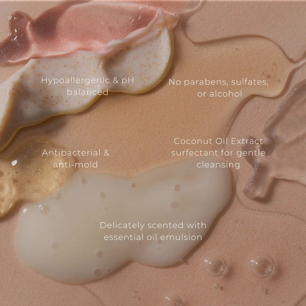 Ingredients: De-Ionized Water, Complex Essential Oil Blend, Persimmon Extract, Coconut Amide Surfactant, Sodium Benzoate, Betaine, Alkyl Sulfonate, Hydrophilic Perfume