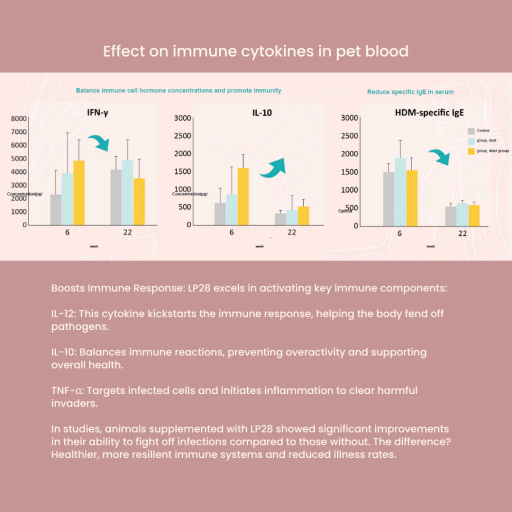 - Lactobacillus plantarum LP28 & Lactobacillus kefiranofaciens M1 - Patented strains of Clinically tested immune Complex Lactic Acid Bacteria that modulates immune response and relieves allergy symptoms.