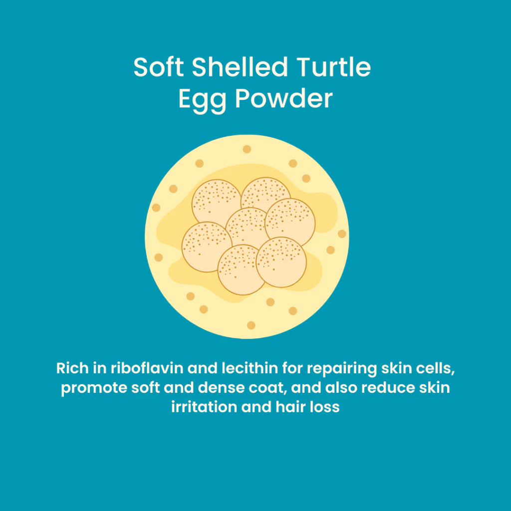 - This health supplement contains clinically proven probiotics and soft-shelled turtle egg powder to promote skin repair, reduce irritation, and enhance coat health.