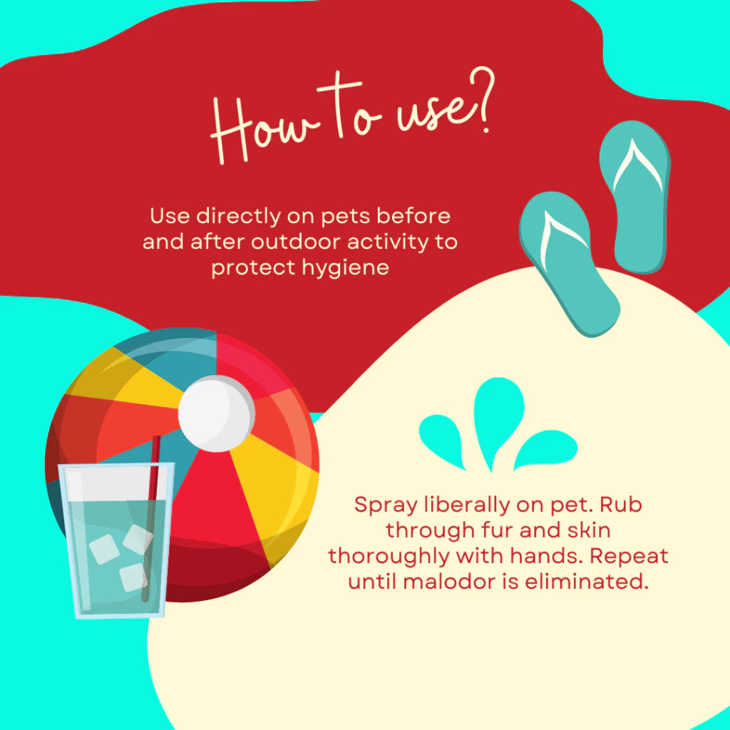 - Directions: Spray directly on stinky pets. Rub through fur and skin thoroughly with hands or brush through. Spray on cotton pads to clean faces, paws and butts. Spray as desired but do not overspray.