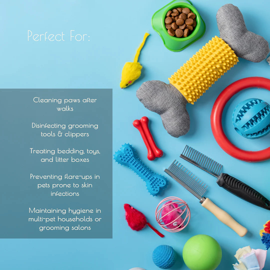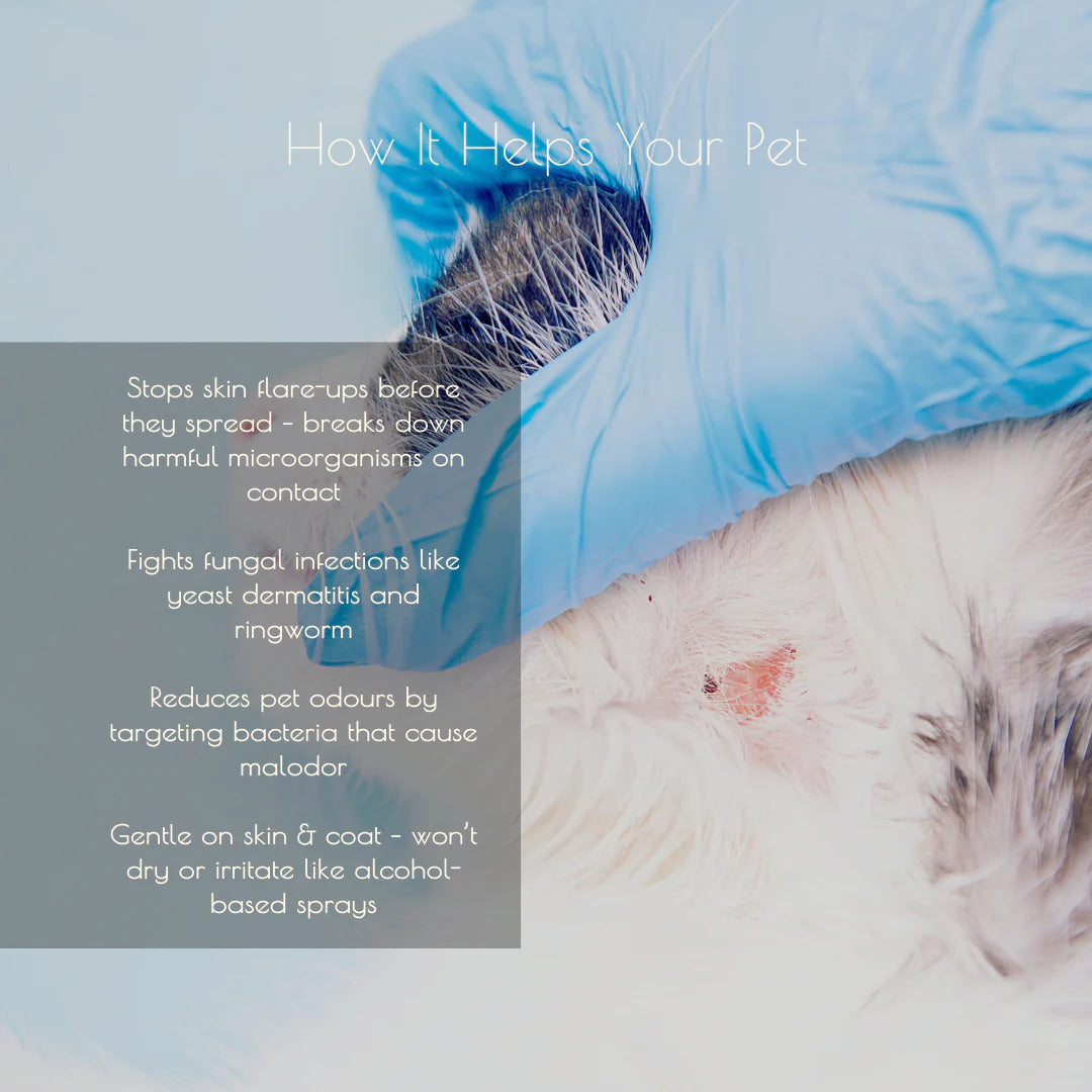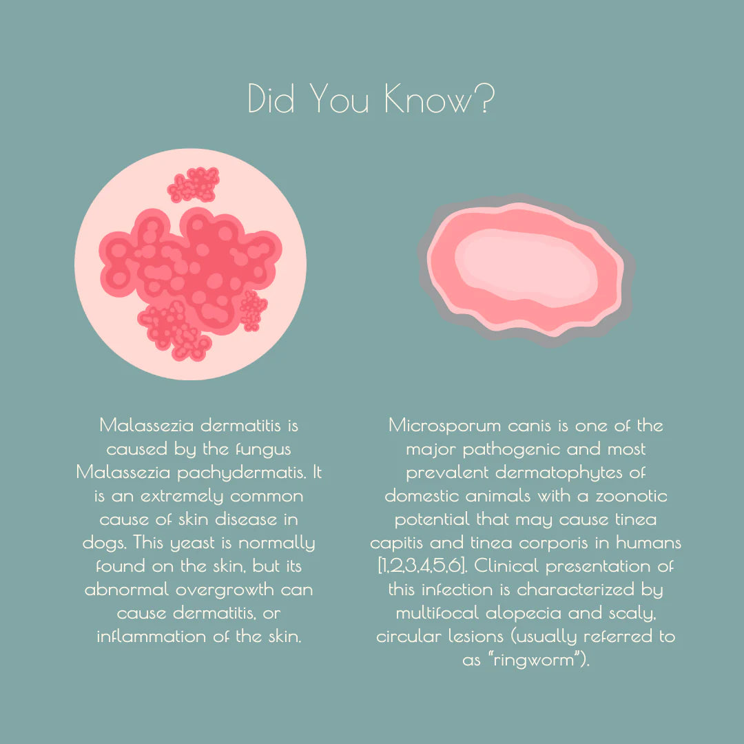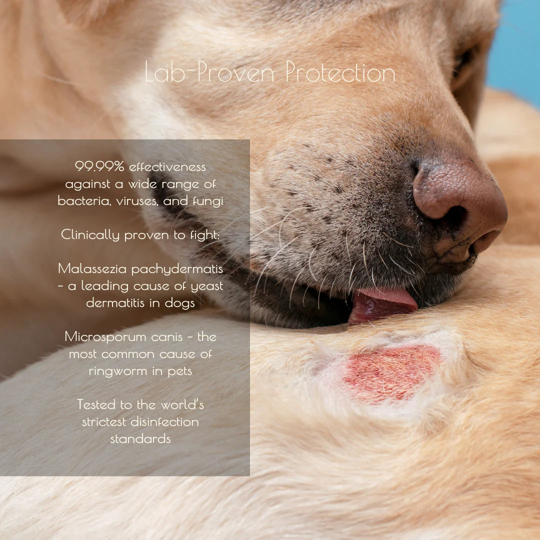 - Inactivates 5 fungi - including Malassezia pachydermatis and Microsporum canis, the leading causes of dermatitis and ringworm in pets.