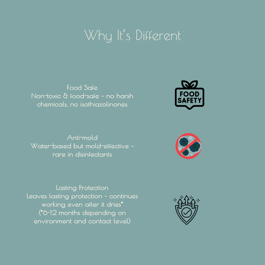 developed with ingredients approved by Japan’s Ministry of Health, Labor & Welfare and the U.S. FDA, making it safe in kitchens, clinics, and on pets. Alcohol-free. Gentle on skin.